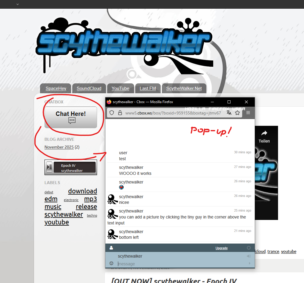 Blogger has really annoyed me for the past few days because I keep wanting to use older gadgets that use iFrames which are now disabled for some reason. Because of this, i've decided to make a pop-up version of my Cbox.